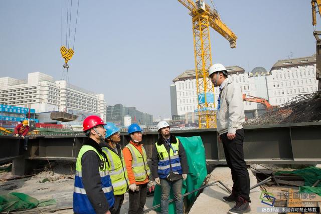 2月27日,中建二局北京分公司第八項(xiàng)目部項(xiàng)目經(jīng)理、黨支部書記石榮在西單文化廣場升級改造項(xiàng)目現(xiàn)場辦公。圖為石榮和同事交流(圖片來源:tuku.qianlong.com)。千龍網(wǎng)記者 于穎攝