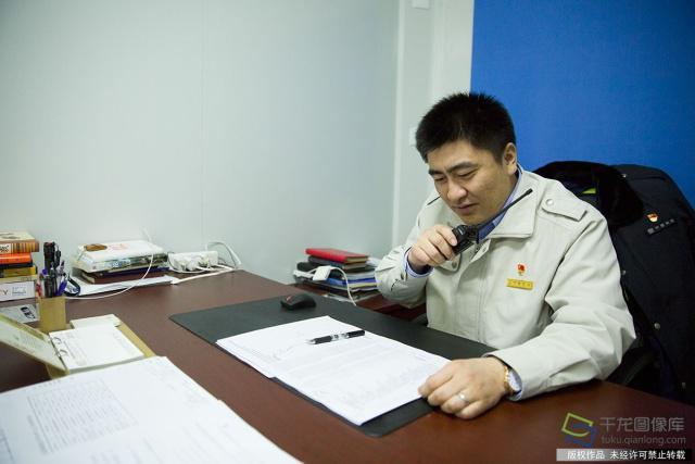 2月27日,中建二局北京分公司第八項(xiàng)目部項(xiàng)目經(jīng)理、黨支部書記石榮在西單文化廣場升級改造項(xiàng)目現(xiàn)場辦公。圖為石榮在辦公室辦公(圖片來源:tuku.qianlong.com)。千龍網(wǎng)記者 于穎攝