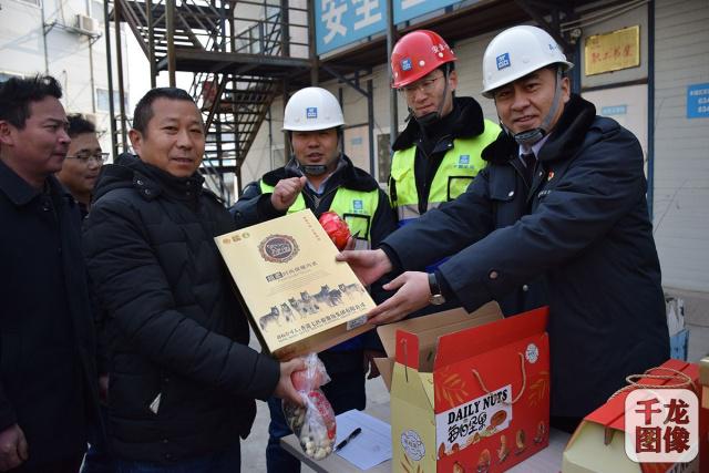 2019年2月6日,在中建二局北京分公司西單文化廣場升級改造項(xiàng)目的生活區(qū)內(nèi),石榮為留守工地的農(nóng)民工發(fā)放慰問品。中建二局北京分公司供圖 千龍網(wǎng)發(fā)