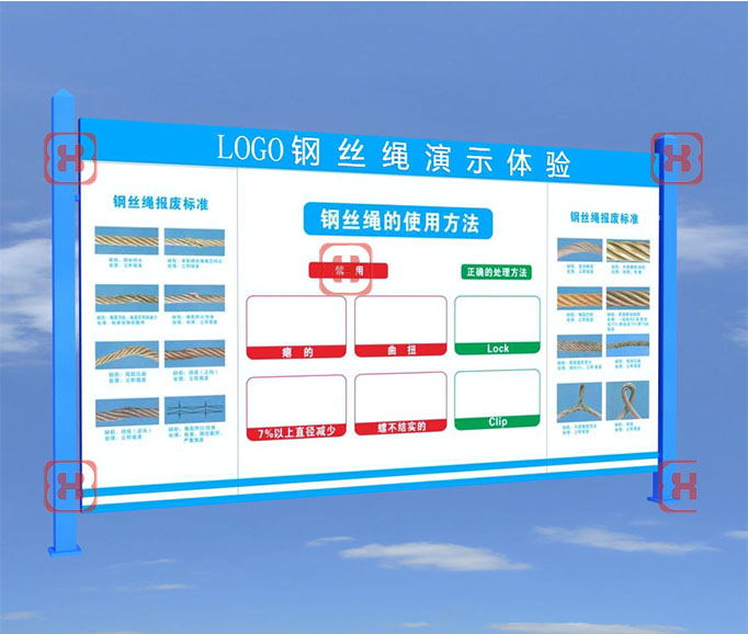 2、采用鍍鋅鋼構(gòu)架,展示鋼絲繩的正確處理方式和禁用方式。配搭鋼絲繩的一些報(bào)廢標(biāo)準(zhǔn)。